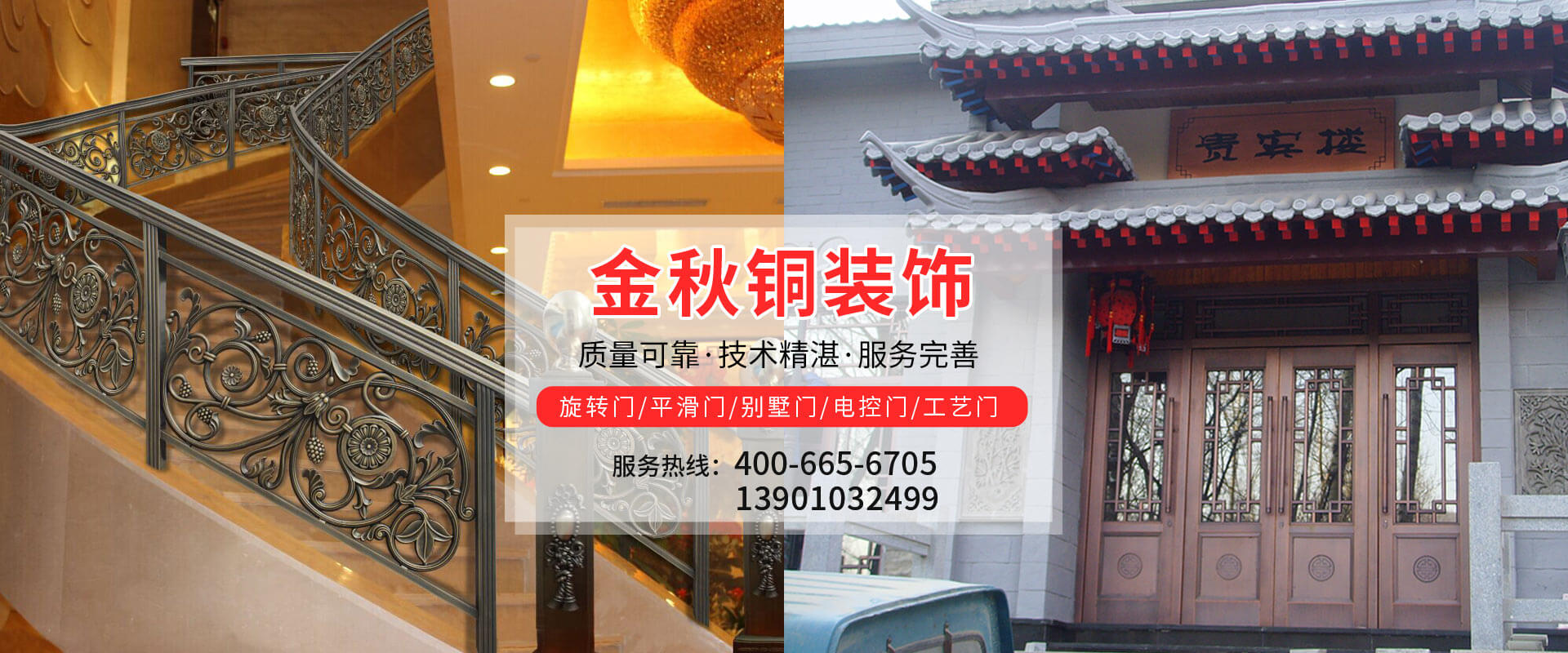 北京金秋銅裝飾材料有限公司是專業(yè)生產(chǎn)銅裝飾材料及設(shè)計(jì)、開發(fā)、制造、施工、售后服務(wù)為一體的大型綜合企業(yè)??沙薪咏ㄖ~裝飾工程及五星級(jí)酒店、別墅、博物館、樓樘管所等高檔銅裝飾項(xiàng)目;生產(chǎn)各種規(guī)格的旋轉(zhuǎn)門、平滑門、別墅門、電控門、工藝門、旋轉(zhuǎn)護(hù)欄、屋頂銅飾防水瓦、浮雕壁畫......